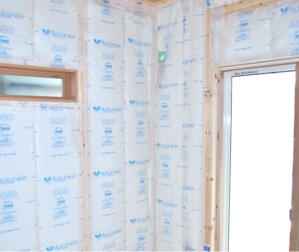 シックハウス症候群の原因物質「ホルムアルデヒド」を含まない、健康に配慮したグラスウール断熱材に取り替えます。約3ミクロンの超細繊維で、同密度の他の断熱材よりも高い断熱性を発揮します。